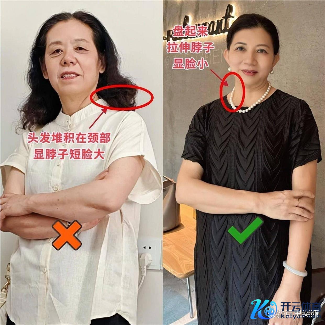 要点⑵.头发堆积在脖颈处,显脸大;盘起来更显脸小