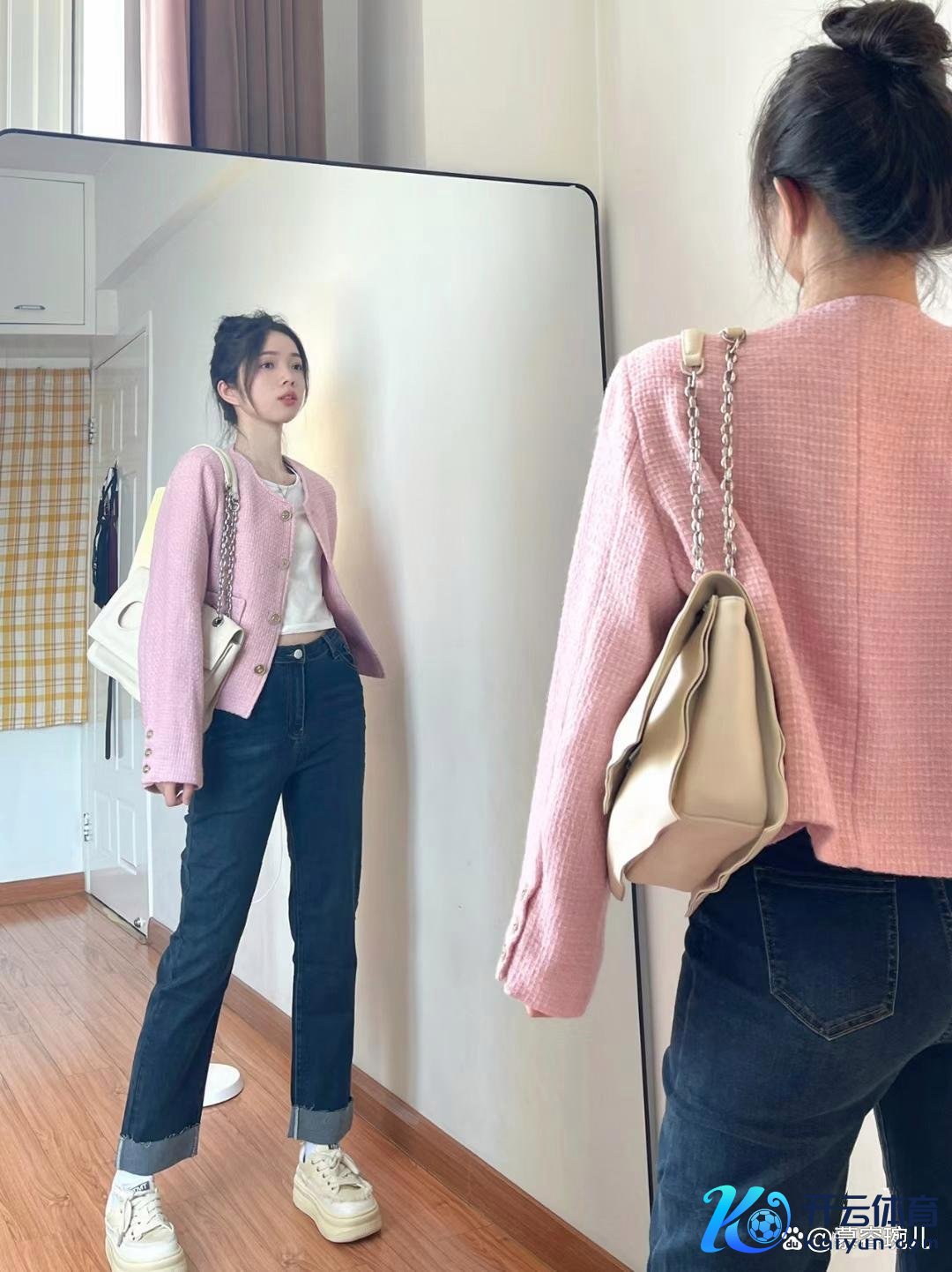 五五分身材势必王人是身长和腿长疏通约略身长占比4、腿长占比六,这种情况下,平直采取不错把身长占比疗养为三的短款上衣是最省时节力的,当下值得动手的短款上衣有哪些呐?咱们从博主身上的模板中找一下谜底吧!
