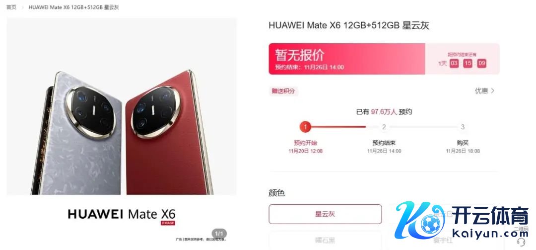 此外,11月20日12时08分,华为新一代折叠屏手机华为Mate X6负责开启预订。收尾发稿,官方商城夸耀,预约购买东谈主数超90万,达97.6万东谈主。