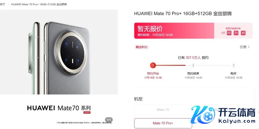 华为商城数据夸耀,收尾发稿,华为Mate70系列预约购买东谈主数已超300万,达307.5万东谈主。
