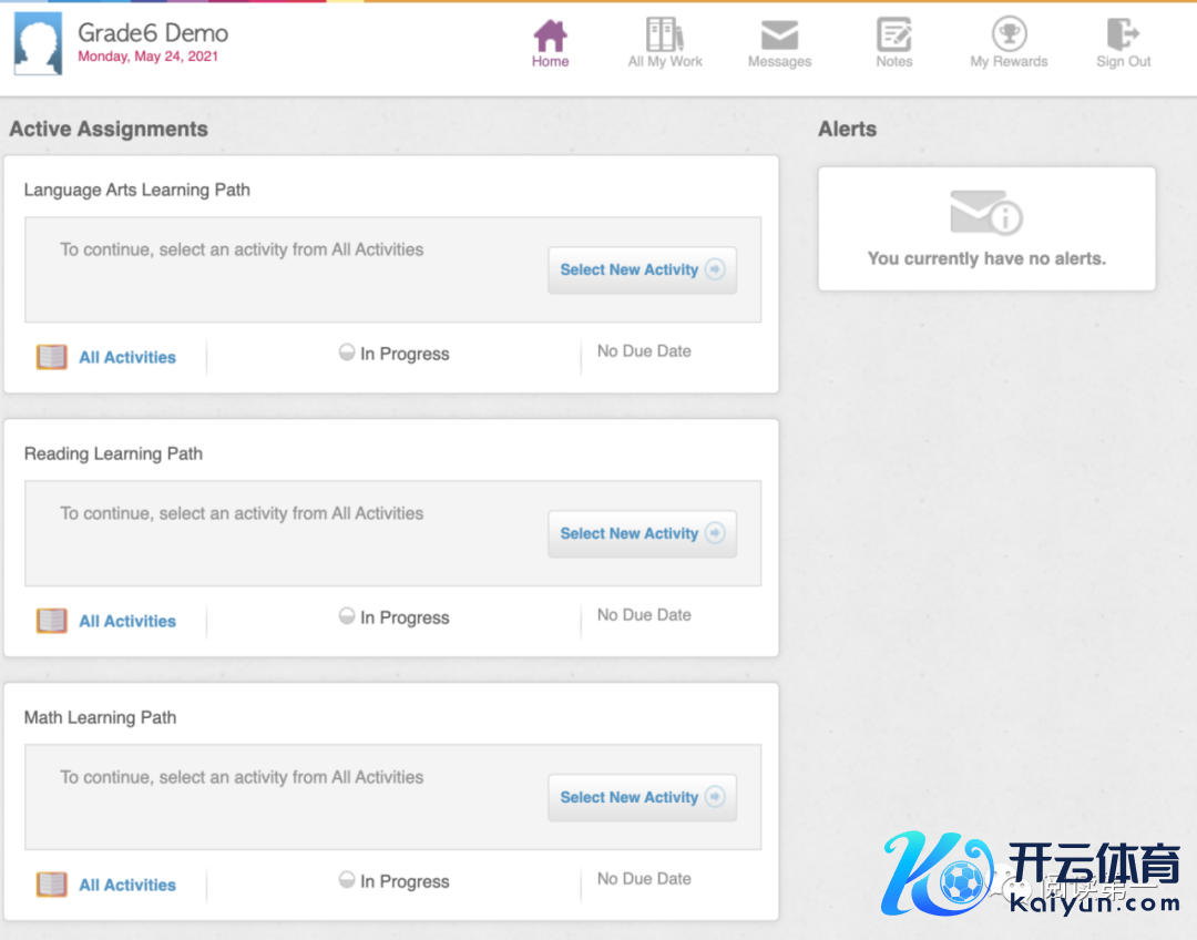 六到十二年级的界面一下子变成很严肃了,妥妥的一份任务列表。八年级的学生登录,照旧以数学、英语阅读、Language Arts三大规模为主。