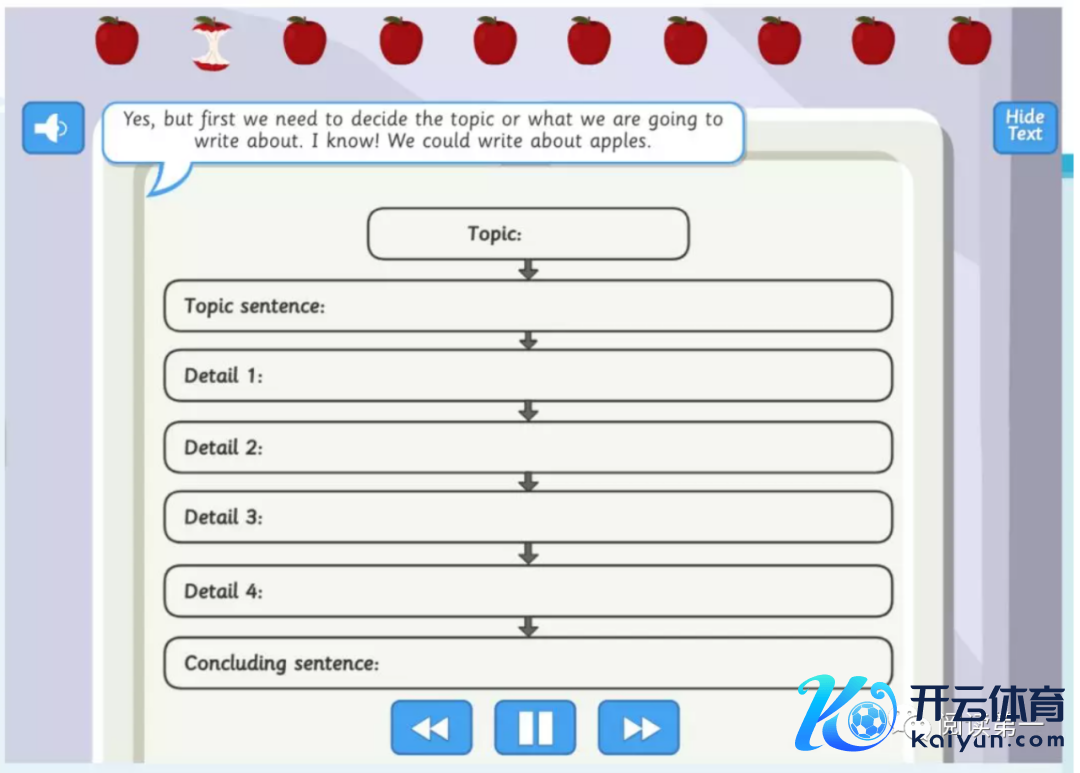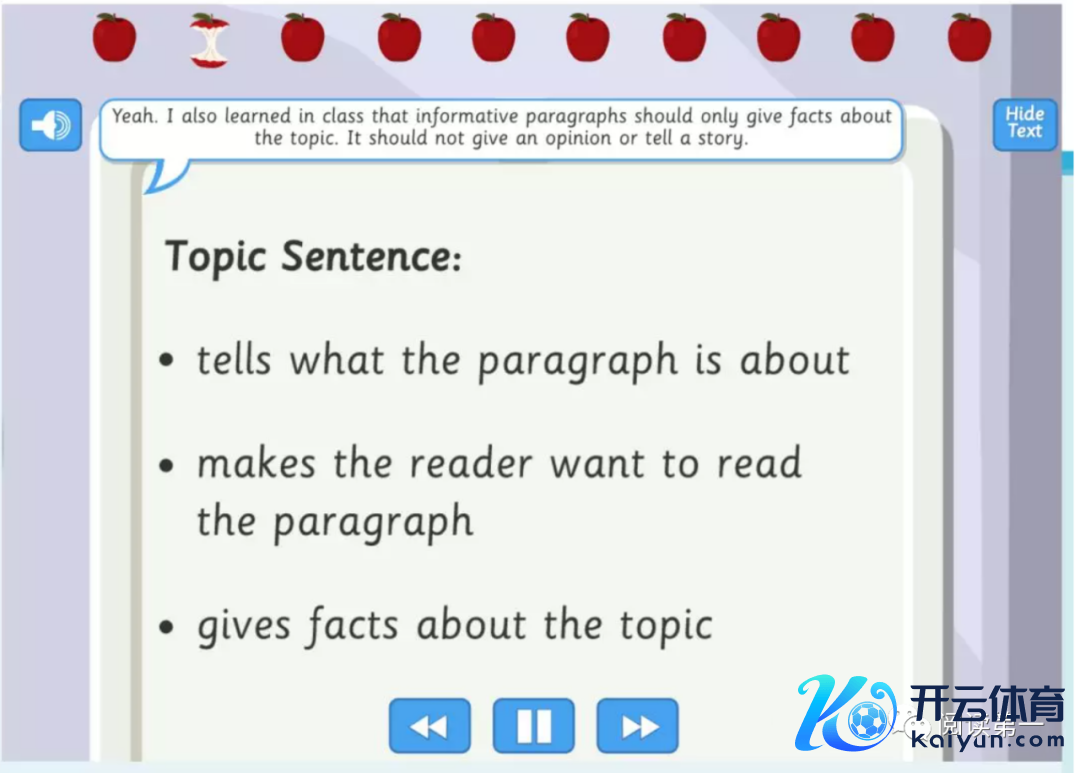 再来望望全球可爱的写稿课。以写一段Informative Paragraph评释文段落为例:外婆来给Emma送苹果的时候,正逢Emma在作念写评释文段落的功课。