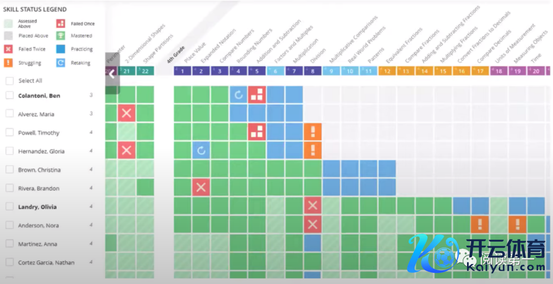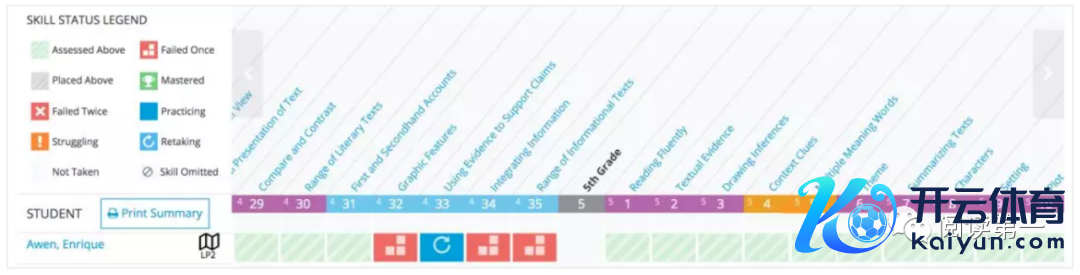比方Enrique有四个阅读手段是停留在四年级的,Graphic Feature、寻找论据、整合信息、信息类文本广度,这四个部分会有疏淡标示,这即是在他的学习舆图里会出现的学习本色。