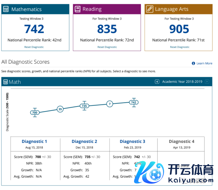 也即是说,家长可以看到一份全地点地查考了孩子各学问点是不是学得牢固的呈报。跟MAP查考比拟雷同的是英文说话、阅读和数学这三门学科分别得分,三门学科在全好意思学生中的排行、每门学科的收获变化弧线,一目了然。