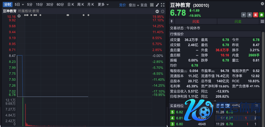问题股当天大面积重挫。上周末,豆神讲授发布公告称,因涉嫌信息透露作恶违纪,中国证监会决定对公司进行立案。早间,豆神讲授开盘20%一字跌停。