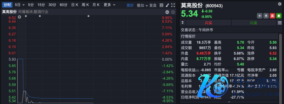 莫高股份也于上周末公告,收到公司董事长杜广真陈诉,其于近日收到中国证监会出具的《立案奉告书》,字据《中华东说念主民共和国证券法》《中华东说念主民共和国行政处理法》等法律律例,因涉嫌内幕来去,中国证监会决定对公司董事长杜广真先生给以立案。莫高股份早间也大幅低开后快速跌停。
