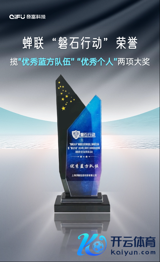 近日,上海市通讯照管局连合市委网信办、市经信委、市公安局、市教委、普陀区东谈主民政府和长兴管委会等单元组织召开了“铸网2024”蚁合安全实网攻防上海地区行径暨“磐石步履”2024年上海市工业和信息化鸿沟蚁合安全实战攻防行径记忆大会,通报记忆了“磐石步履”干系遵循并对优秀单元及个东谈主进行授奖。奇富科技凭借在蚁合安全鸿沟的不凡推崇,继2023年后,再度荣膺“优秀蓝方队伍”名称云开体育,公司信息安全群众揽获“优秀个东谈主”奖。