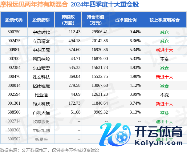 摩根远见两年握有期羼杂为羼杂型-偏股基金,字据最新一期基金季报暴露,该基金钞票成立:股票占净值比89.91%,无债券类钞票,现款占净值比11.97%。基金十大重仓股如下: