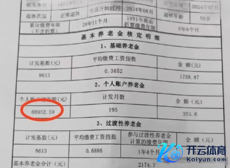 这位退休东谈主员于2024年8月办理退休。她的基本情况是:1993年进入责任,累计工龄29年11个月(即29.92年)。退休时的平均缴费指数为0.3652,个东谈主账户储存额68952.59元。